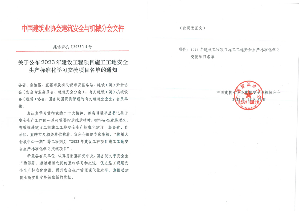 近日,中国建筑业协会建筑安全与机械分会公布了《2023年全国建设工程项目施工工地安全生产标准化学习交流项目名单》(原国家AAA级安全文明标准化工地),福建华航建设集团承建的长乐区三馆三中心项目(工程总承包)获评上榜!